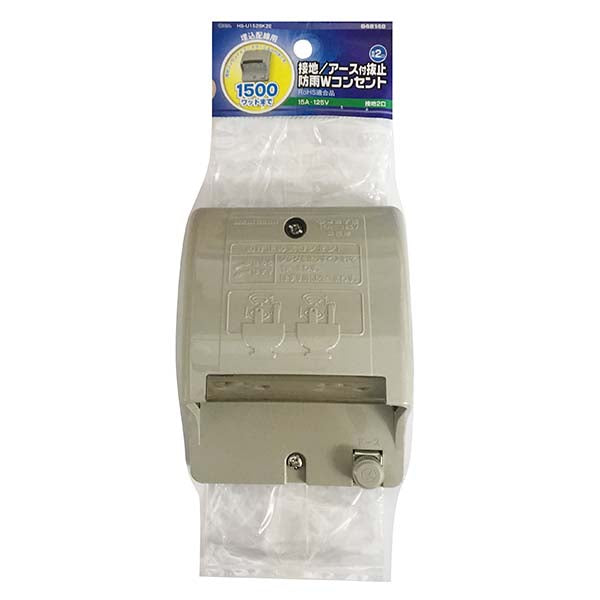 接地/アース付 抜止防雨Wコンセント(接地2口)_04-8140_HS-U152BK2E_OHM オーム電機