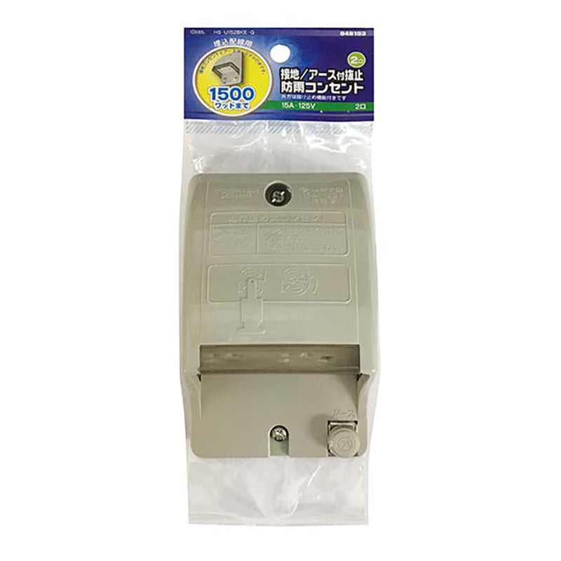 接地/アース付 抜止防雨コンセント(2口)_04-8163_HS-U152BKE-G_OHM オーム電機