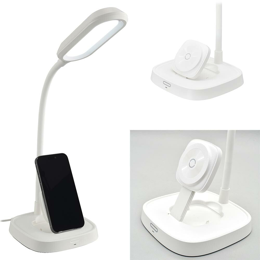 LEDデスクライト(Mag Safe対応/ワイヤレス充電機能付/3段階調光/450 lm/18W/フレキシブルアーム/Ra93/ホワイト)_06-5230_DS-L50FMS-W_OHM(オーム電機)