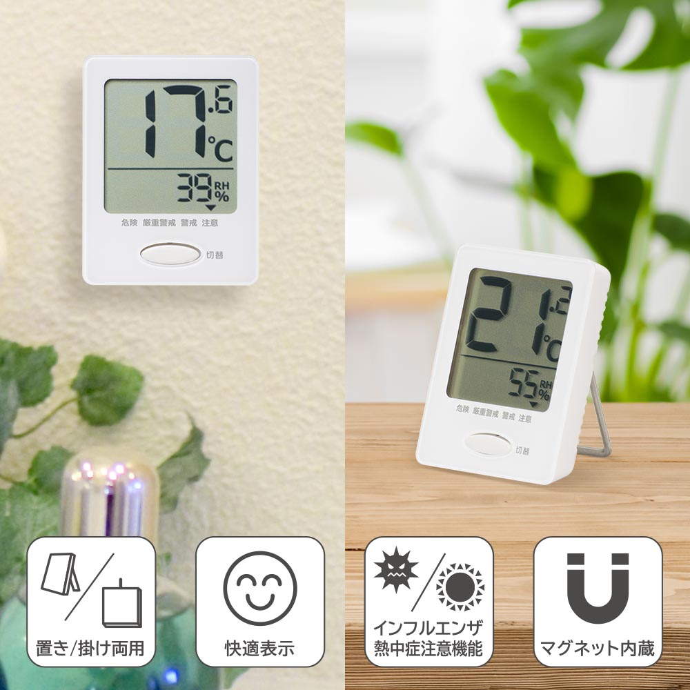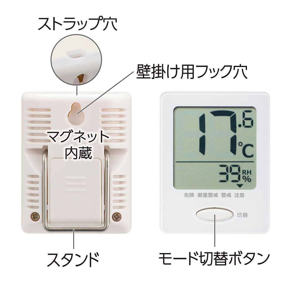 温湿度計(インフルエンザ・熱中症注意機能付/コイン電池CR2032×1個付属/ホワイト)_08-1439_HB-T03B-W_OHM(オーム電機)