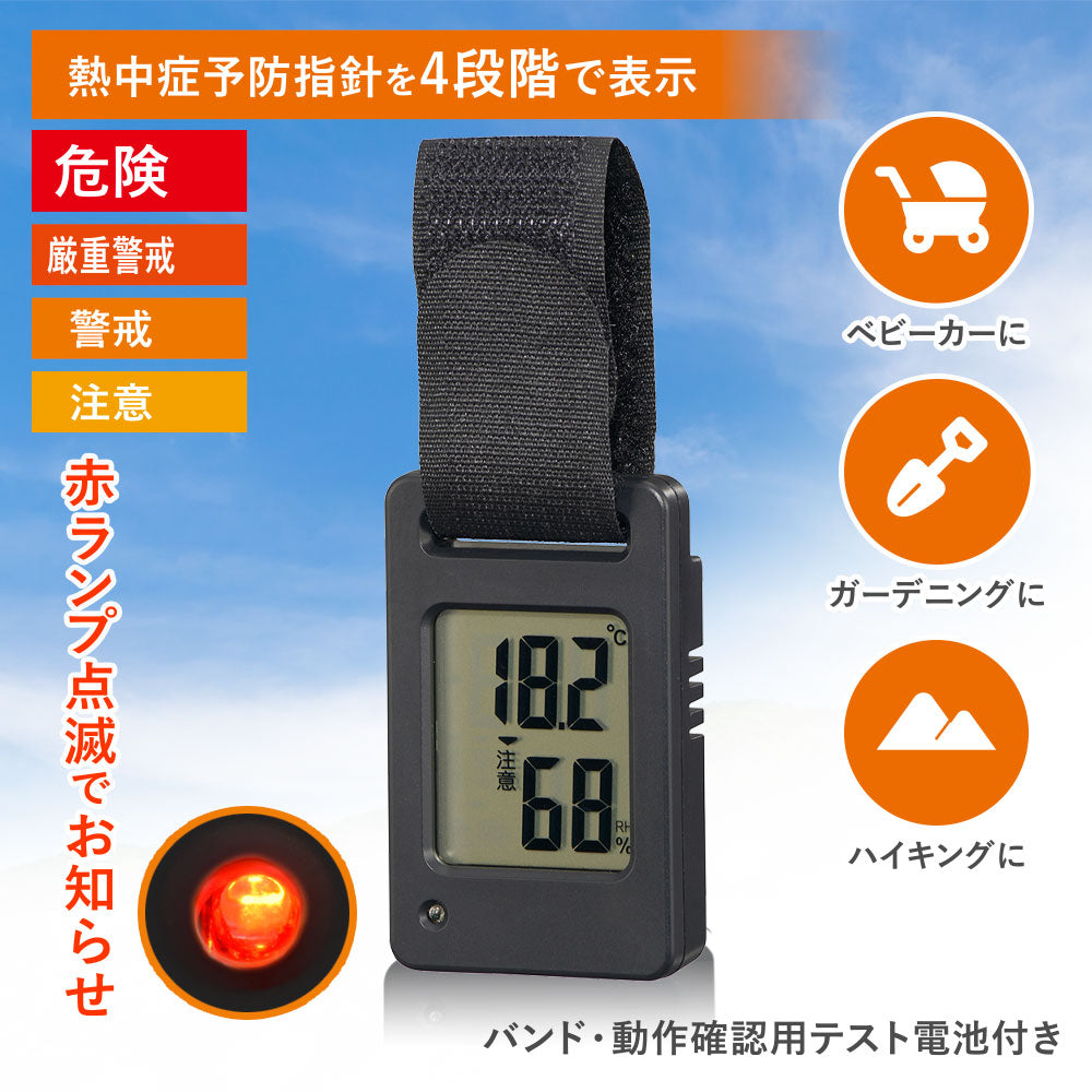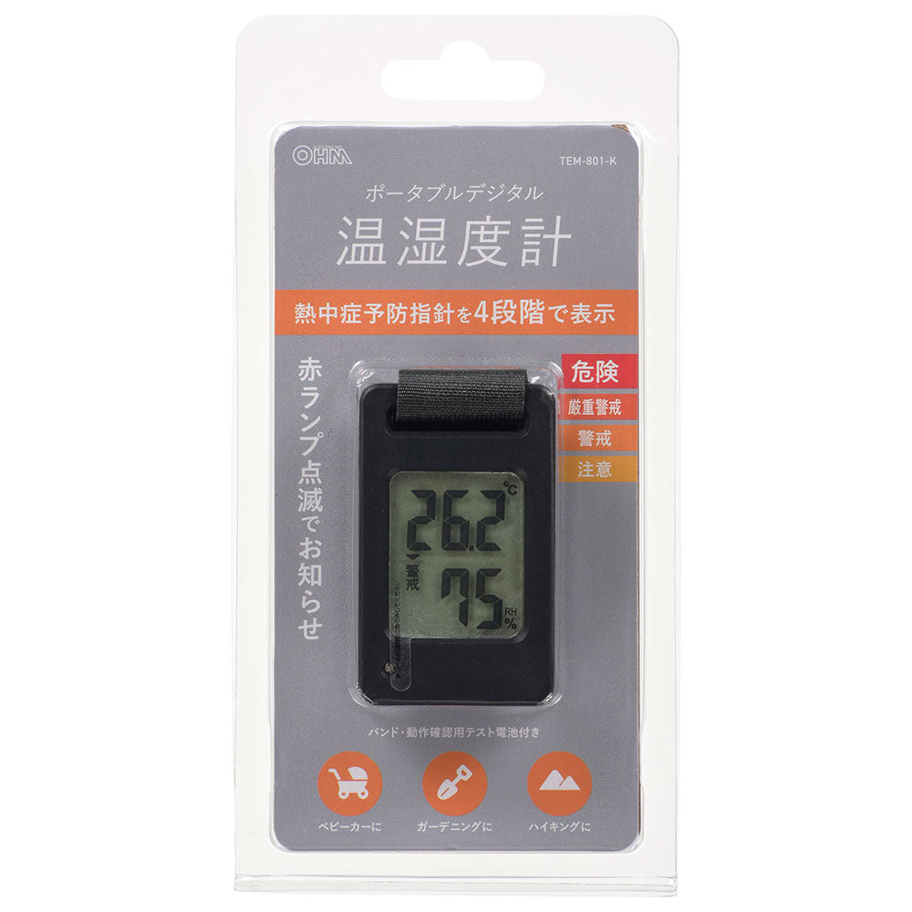 ポータブル温湿度計(熱中症予防指針4段階表示/コイン型電池 CR2032×1個付属/ブラック)_08-1453_TEM-801-K_OHM(オーム電機)