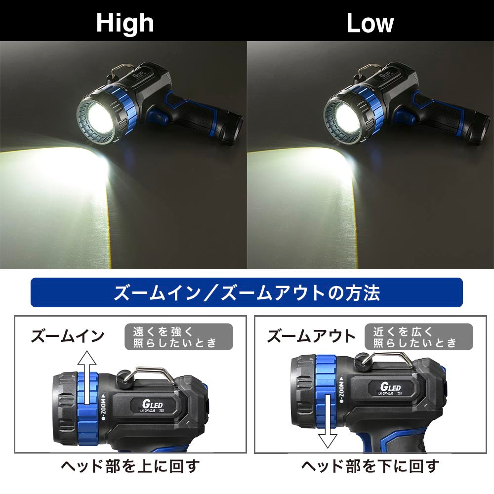 充電式GLEDライト(最大照射距離700m/1400 lm/インジケータ付)_08-1733_LH-CP140A5_OHM(オーム電機)