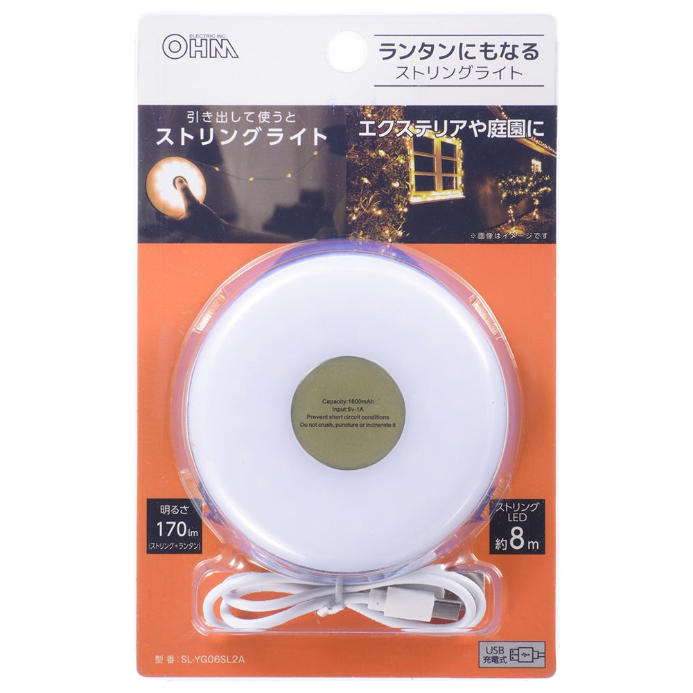 LEDストリングライト(長さ8m/USB充電式/170 lm/連続点灯約4.5時間/保護等級IPX3)_08-7006_SL-YG06SL2A_OHM(オーム電機)