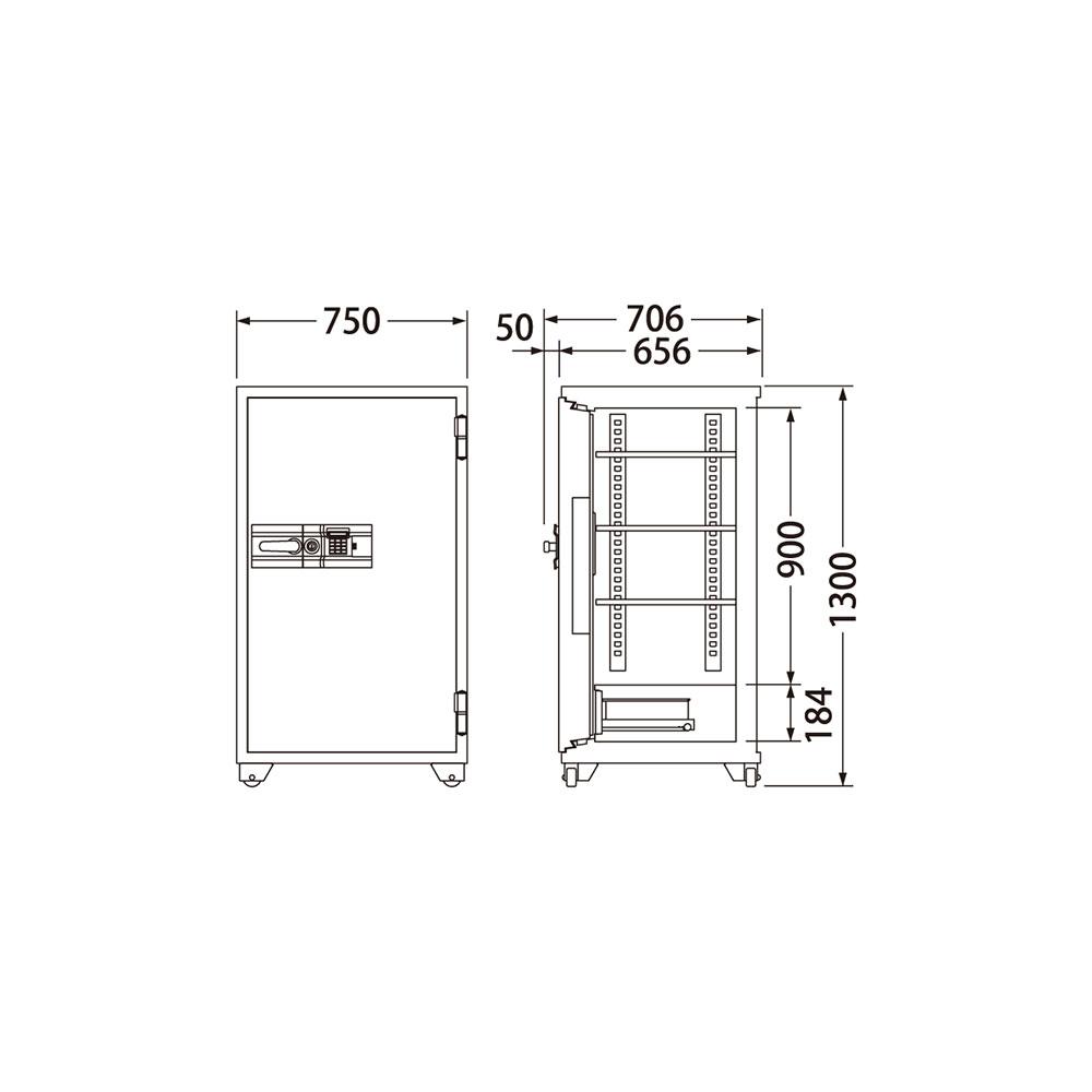 スタンダードな錠前を搭載した1時間耐火の大型金庫。すぐにご導入しやすいプライスシリーズ。