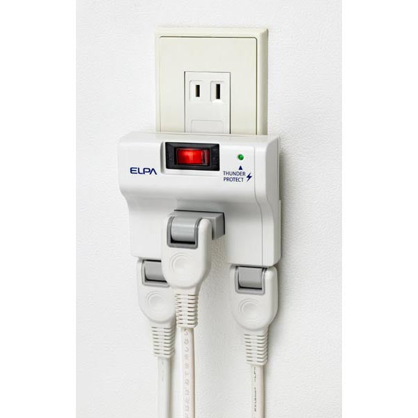 A-S400B(W)_1694600_耐雷サージ ブレーカー内蔵スイッチ付タップ 3個口_ELPA(エルパ・朝日電器)