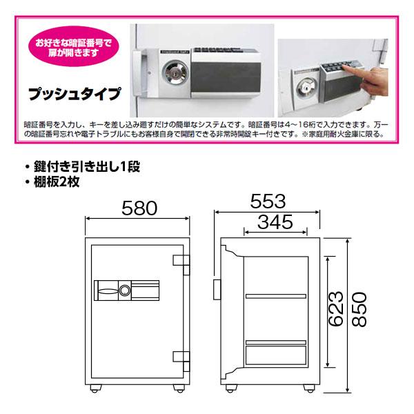 DE85 ダイヤセーフ 業務用金庫 プッシュタイプ(テンキー式) 90分耐火 90分耐火 175kg 93L