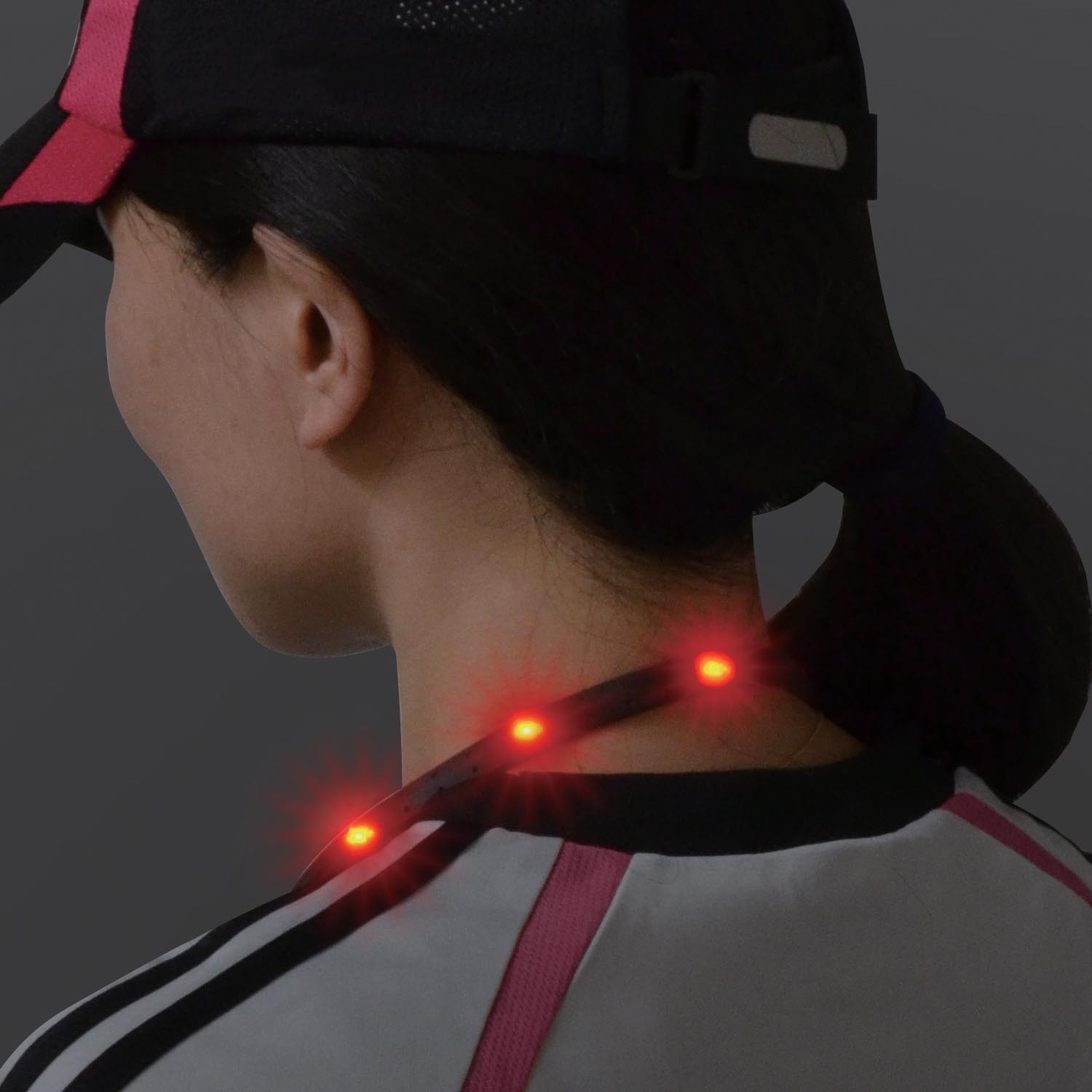 ●バンド部の赤色LED点滅で後方にもアピール