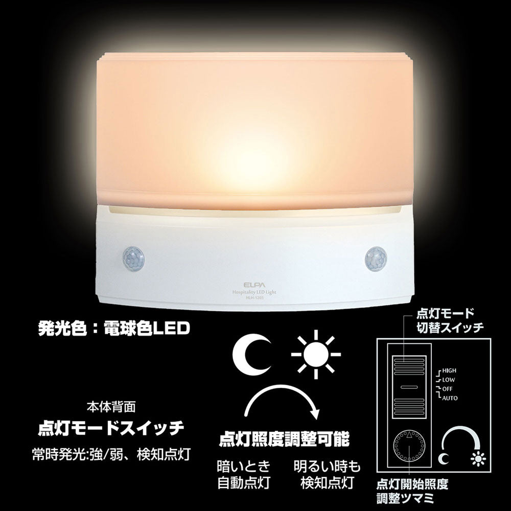 HLH-1203(PW)_1750200_屋内用 人感センサーライト(もてなしのあかり) 電球色常時点灯可_ELPA(エルパ・朝日電器)