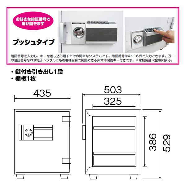 MEK52-DX ダイヤセーフ 家庭用耐火金庫 プッシュタイプ 1時間耐火 1時間耐火 75kg 40L A4タテ・ヨコ収納