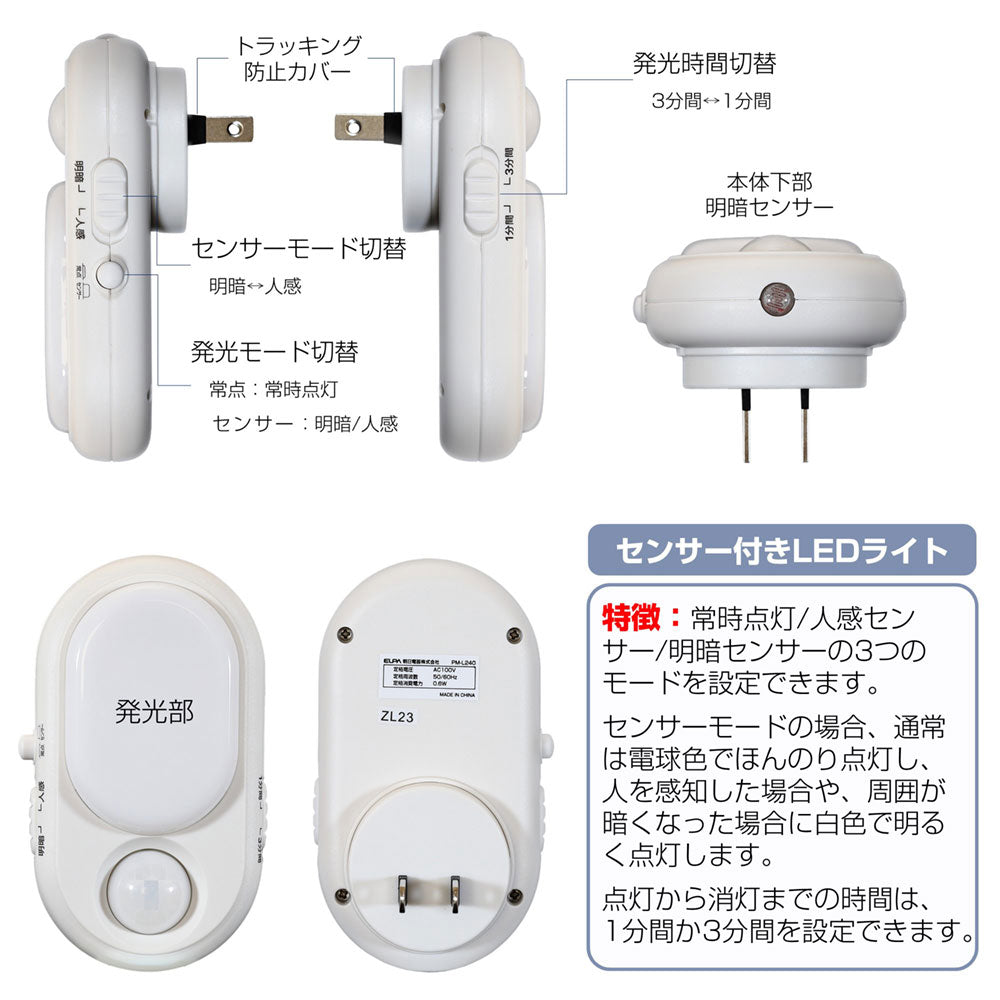 PM-L240_1641300_屋内用 人感/明暗切替センサーライト オレンジ常時点灯可_ELPA(エルパ・朝日電器)