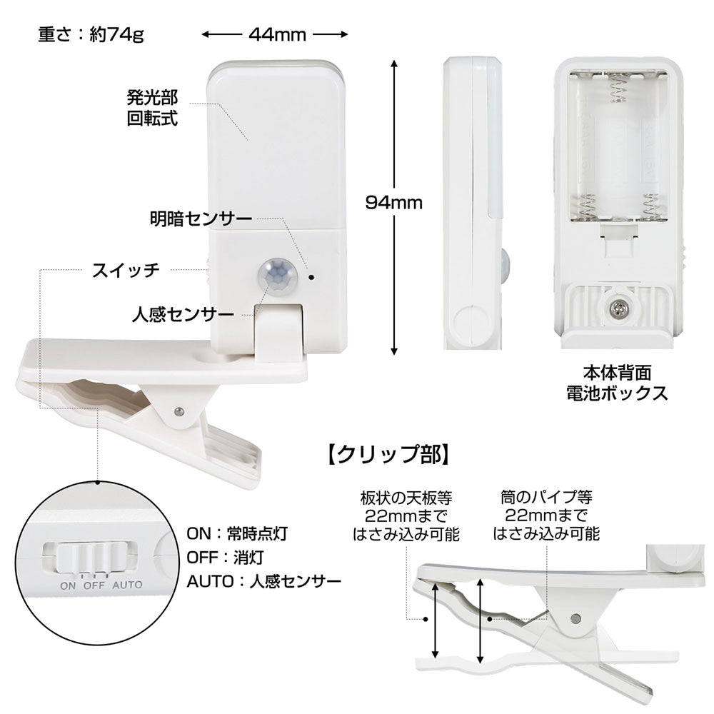 PM-LCP01_1964700_LEDナイトライト 人感センサー 白色 クリップ式_ELPA(エルパ・朝日電器)