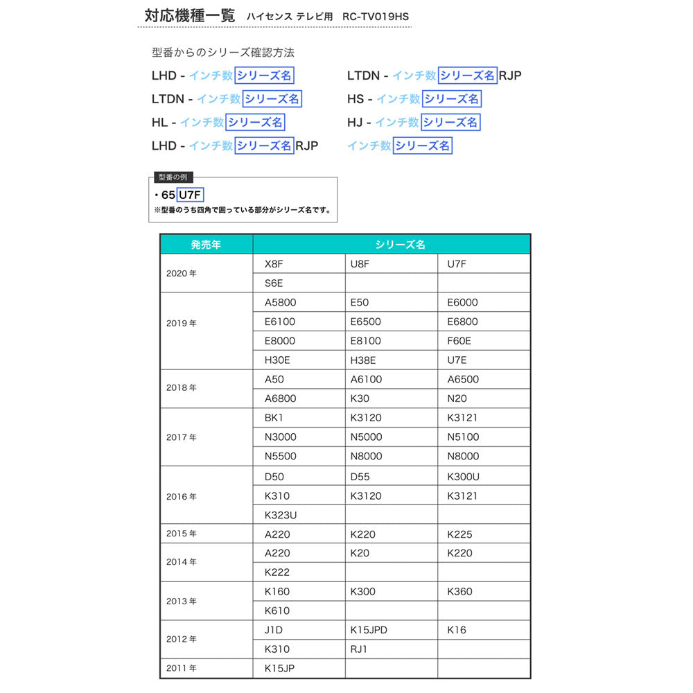 テレビリモコン ハイセンス用_RC-TV019HS_ELPA(エルパ・朝日電器)