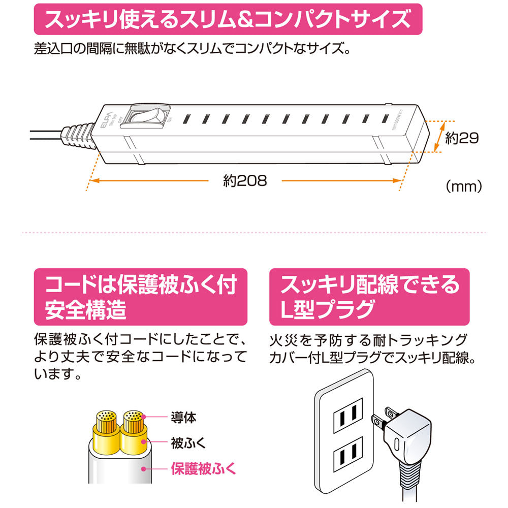 WL-SW5015B(W) スリムタップ 5個口 1.5m 集中スイッチ付_ELPA(エルパ・朝日電器)