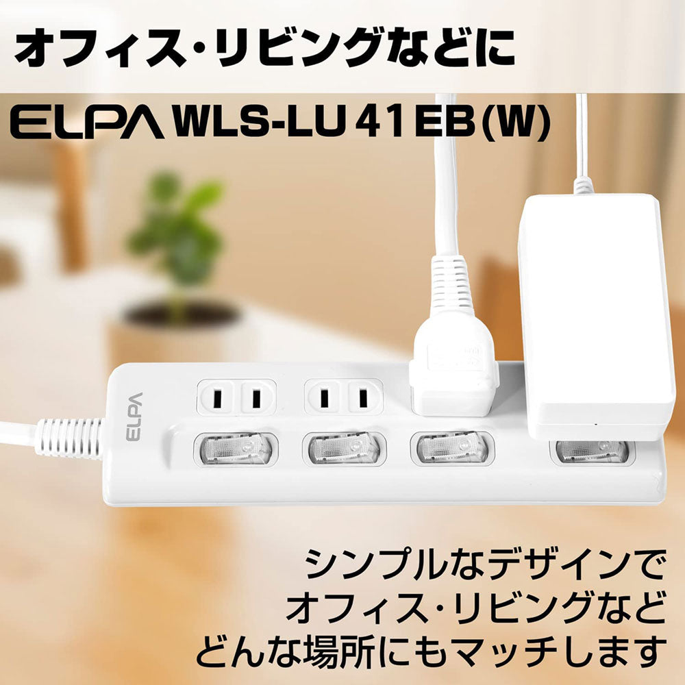 WLS-LU41EB(W)_1782600_スイッチ付タップ LEDランプ 上挿し 4個口 1m_ELPA(エルパ・朝日電器)