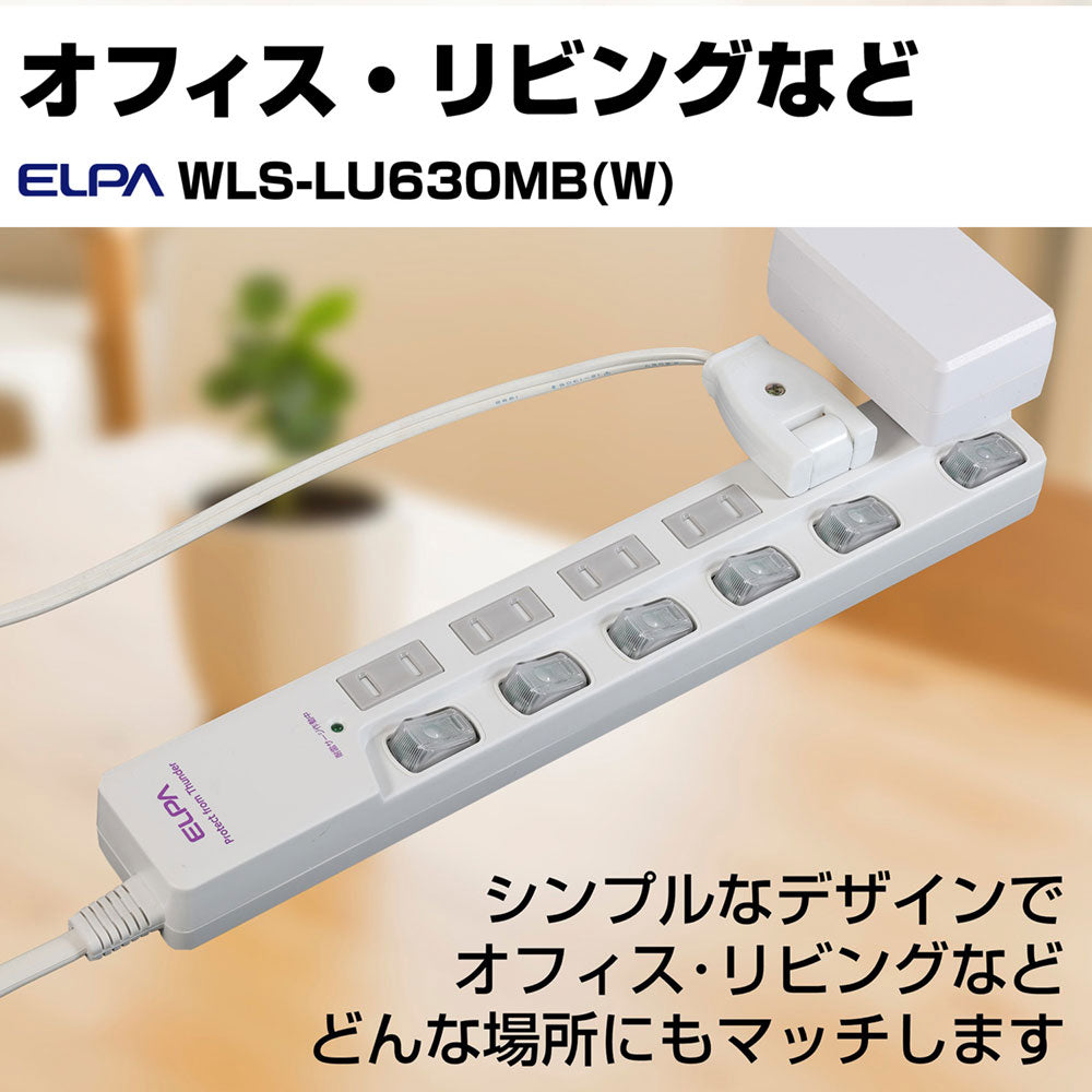 WLS-LU630MB(W) LEDランプスイッチ付タップ 上挿し 6個口 3m_ELPA(エルパ・朝日電器)
