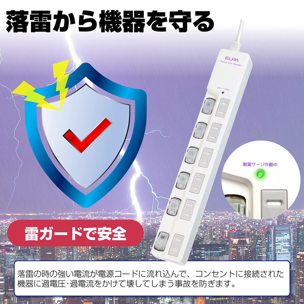 WLS-LU650MB(W) LEDランプスイッチ付タップ 上挿し 6個口 5m_ELPA(エルパ・朝日電器)