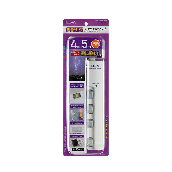 WLS-LY450MB(W) LEDランプスイッチ付タップ 横挿し 4個口 5m_ELPA(エルパ・朝日電器)