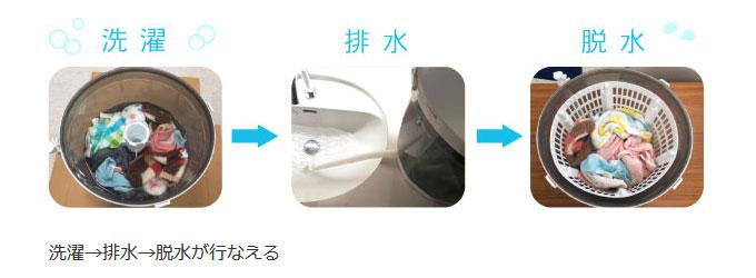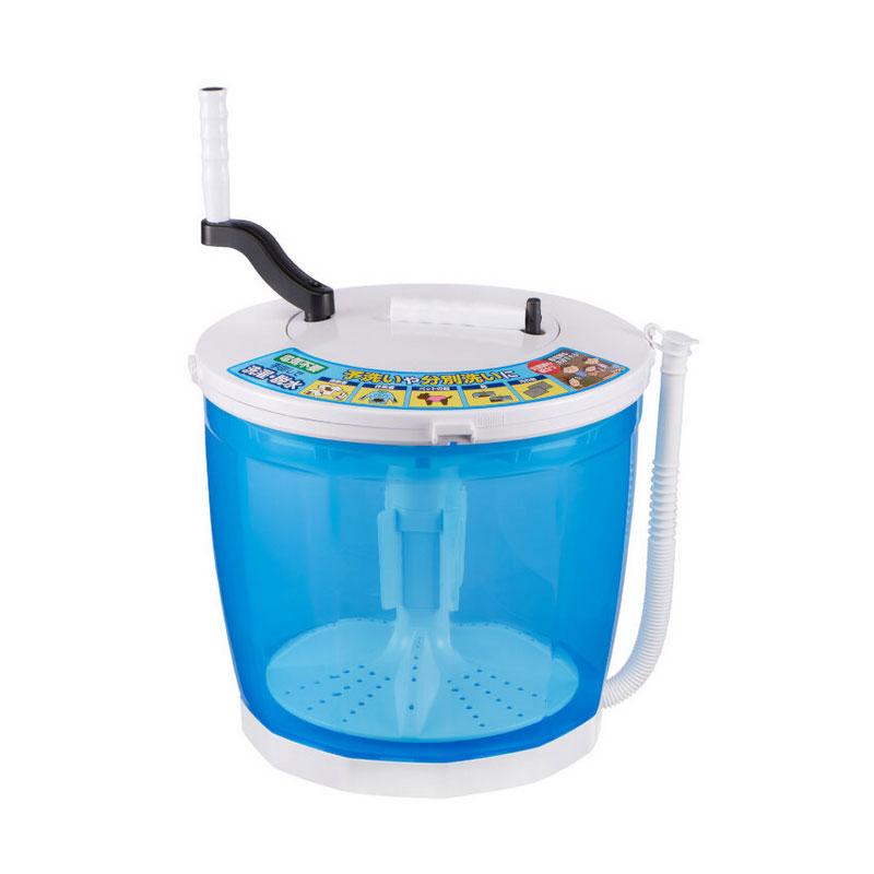 - ハンドルを回すだけで洗濯脱水槽が回転し、洗濯と脱水ができる。